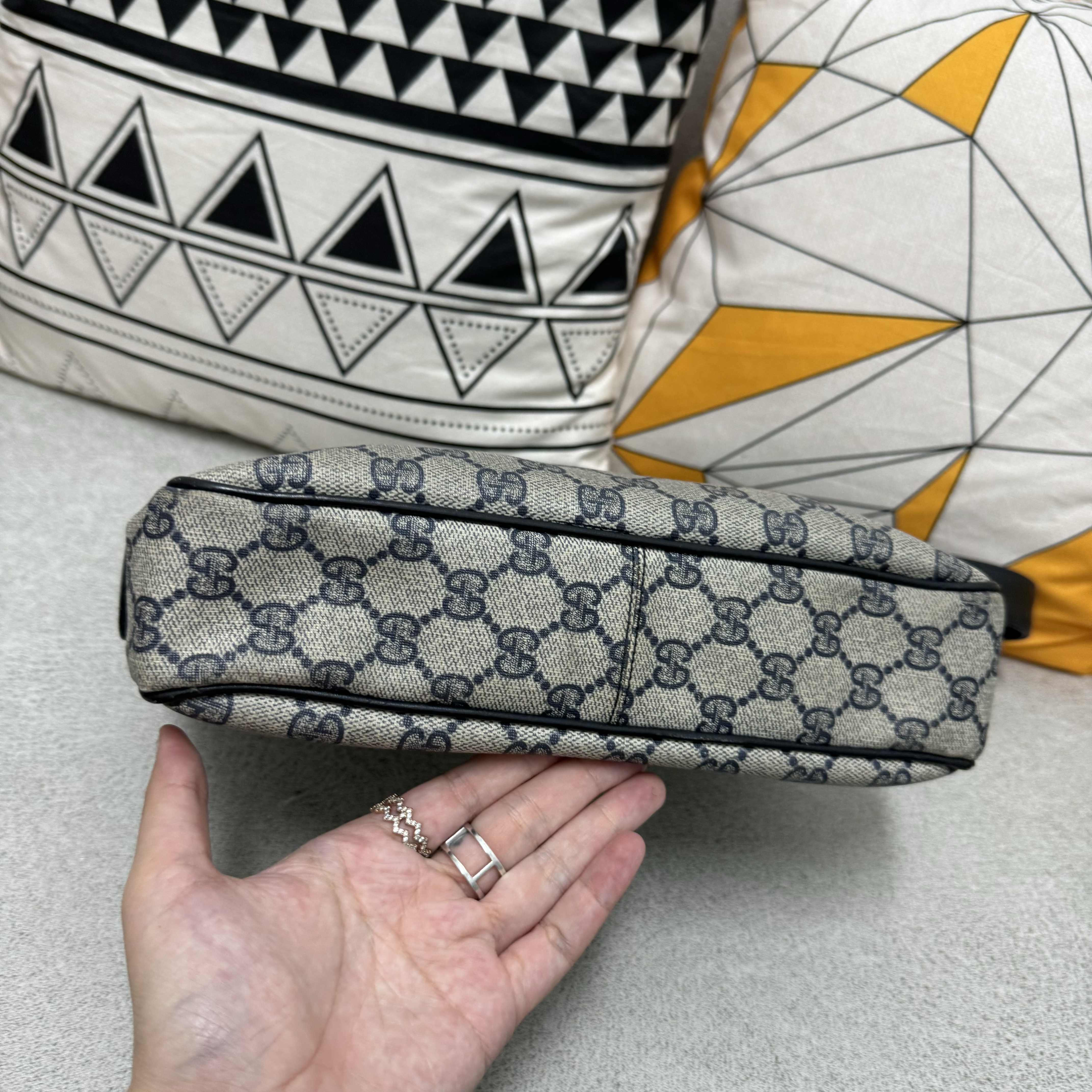 Gucci Monogram Navy Shoulder Bag💕 罕見款,只可單肩,帶不可以除的,有正常一般使用感的,皮位使用痕跡會多一點。內裡、肩帶狀態良好。/ RANK AB