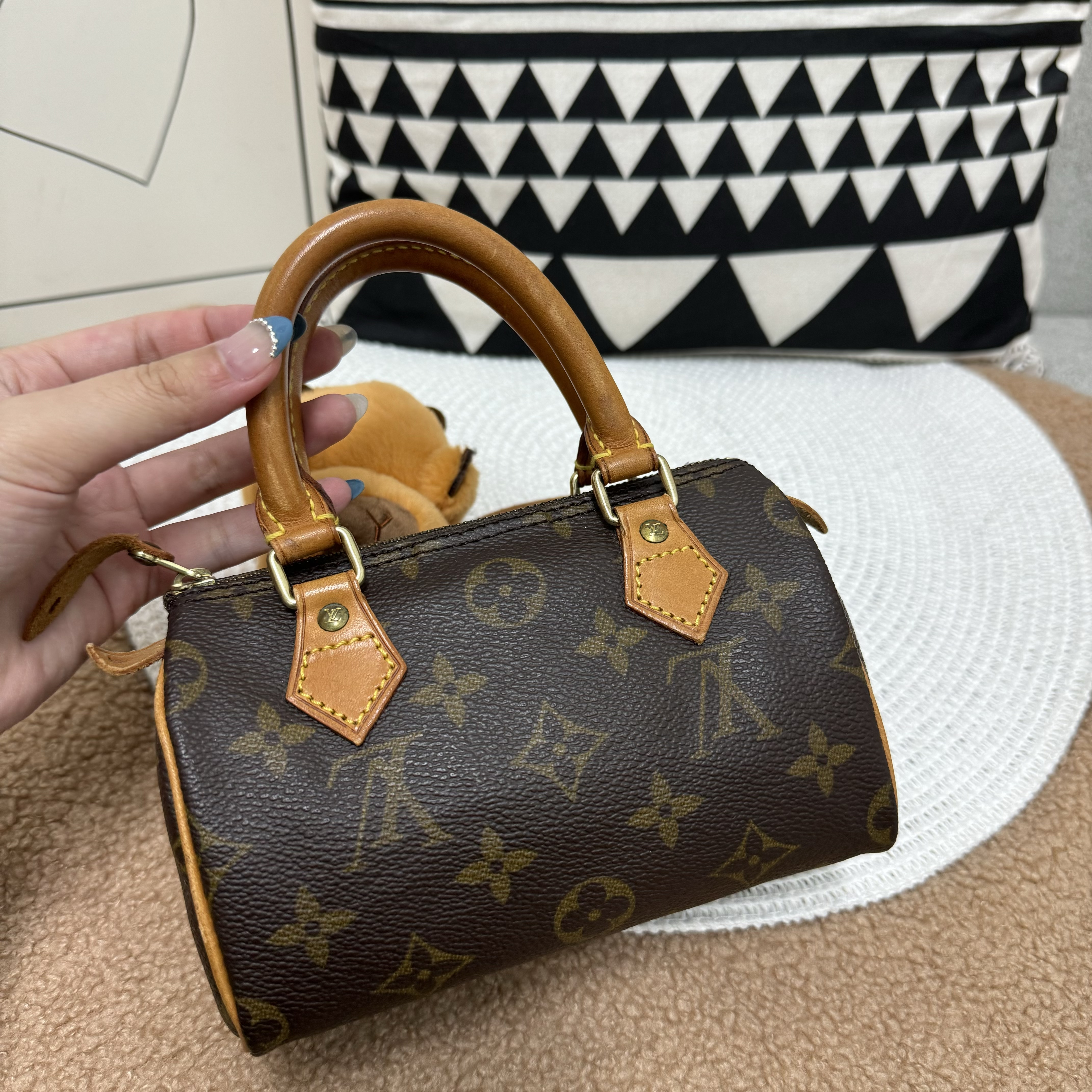 Size : 16x7.5x10cm 好好大熱既款式💙不多說了✨ 整體有正常使用痕跡,內裡少少污跡 可以清潔,四角均有少許磨損 五金良好,最有瑕疵位置在手挽有磨 整體都不大問題,可以正常使用 送肩帶🤎